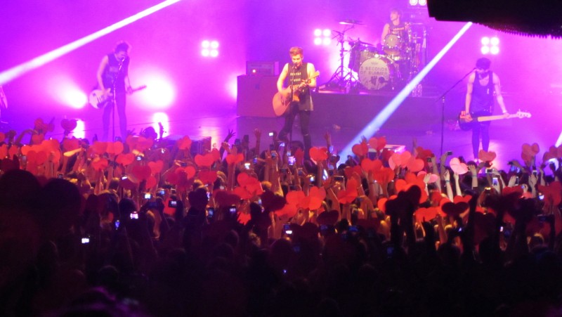 As the band slowed things down (not by much) with their song “Beside You”, the crowd responded with raising paper hearts in the air and signs reading “the city that never sleeps” with the NYC skyline on them. Lead singer, Luke Hemmings commented mid song how cool the crowd looked from stage and we totally agree. It’s amazing to see just how much social media has impacted music and concerts today, as hundreds of fans in the audience held up their hearts.
