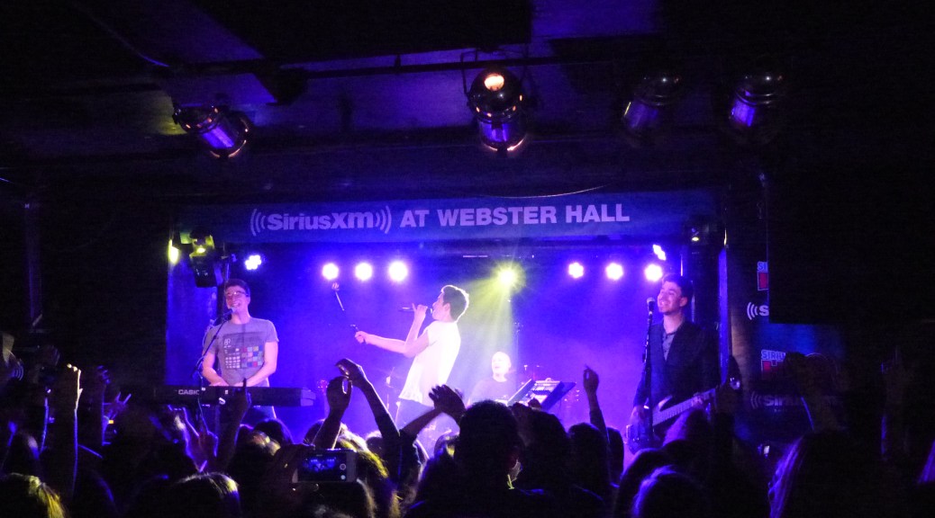 Indie pop band AJR released their debut album, Living Room, earlier this week, and celebrated with a concert at NYC’s Webster Hall last night. The album has been a long time coming for brothers Adam, Jack and Ryan, who got their start by busking around New York. Those experiences certainly influence their performing style – they’ve mastered the ability to win over a crowd with their energetic playing style.